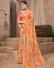 Vishal Prints Pastel Orange Printed Brasso Saree With Fancy Border