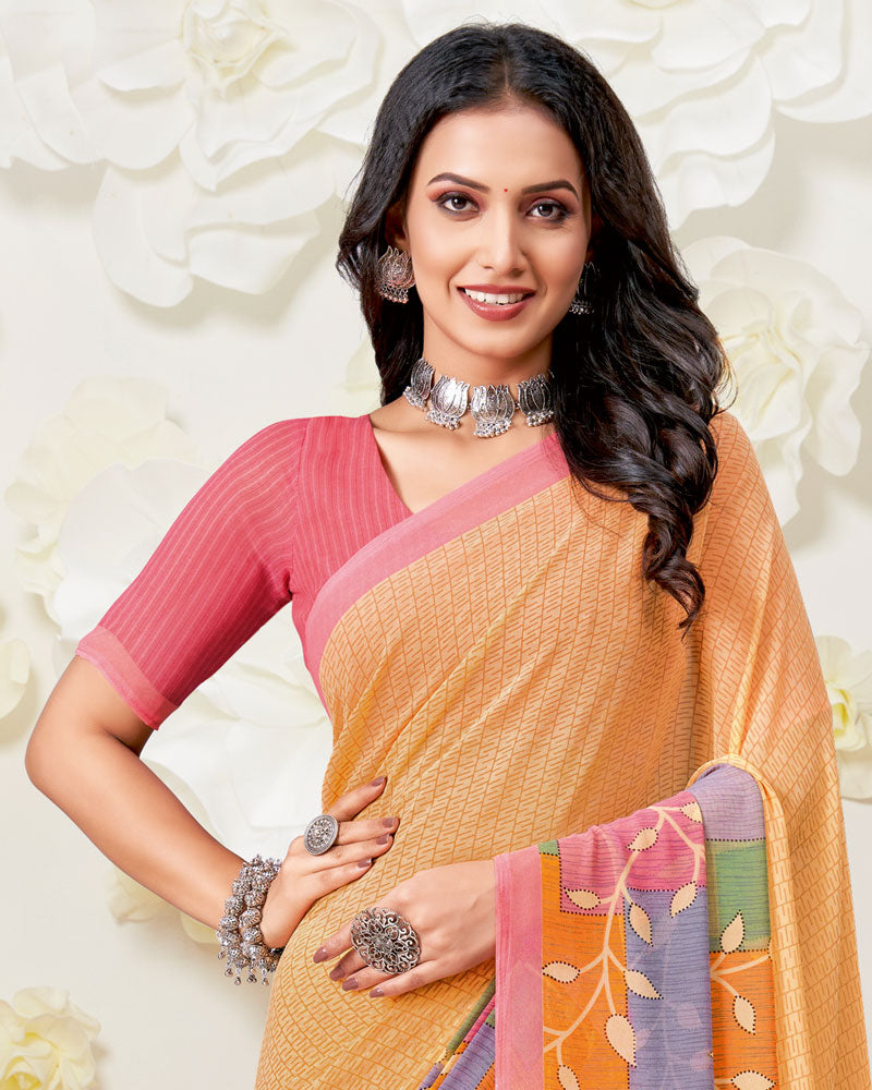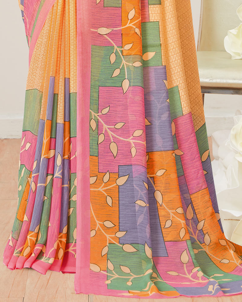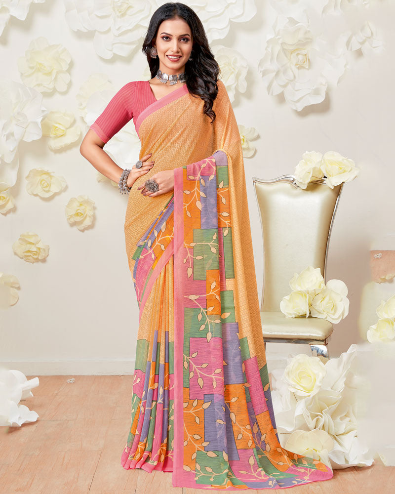 Vishal Prints Pastel Orange Printed Georgette Saree