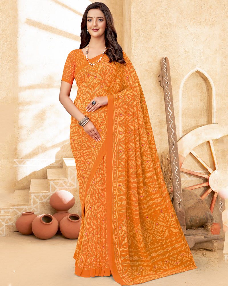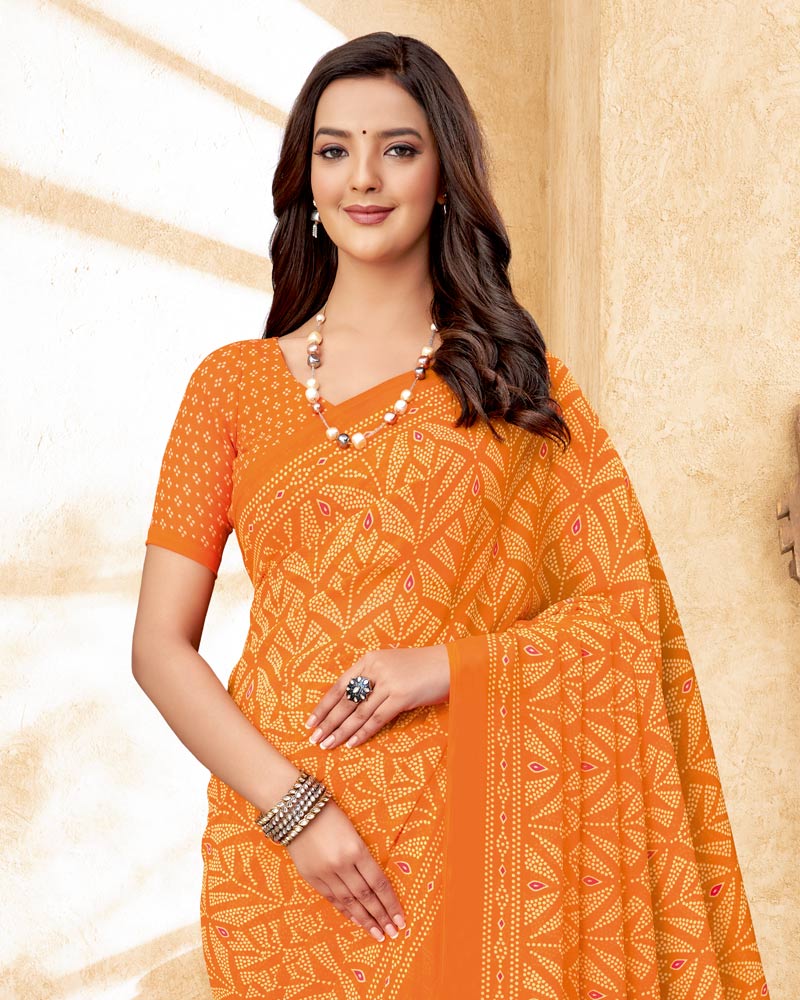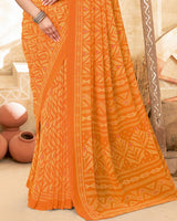 Vishal Prints Pastel Orange Printed Georgette Saree