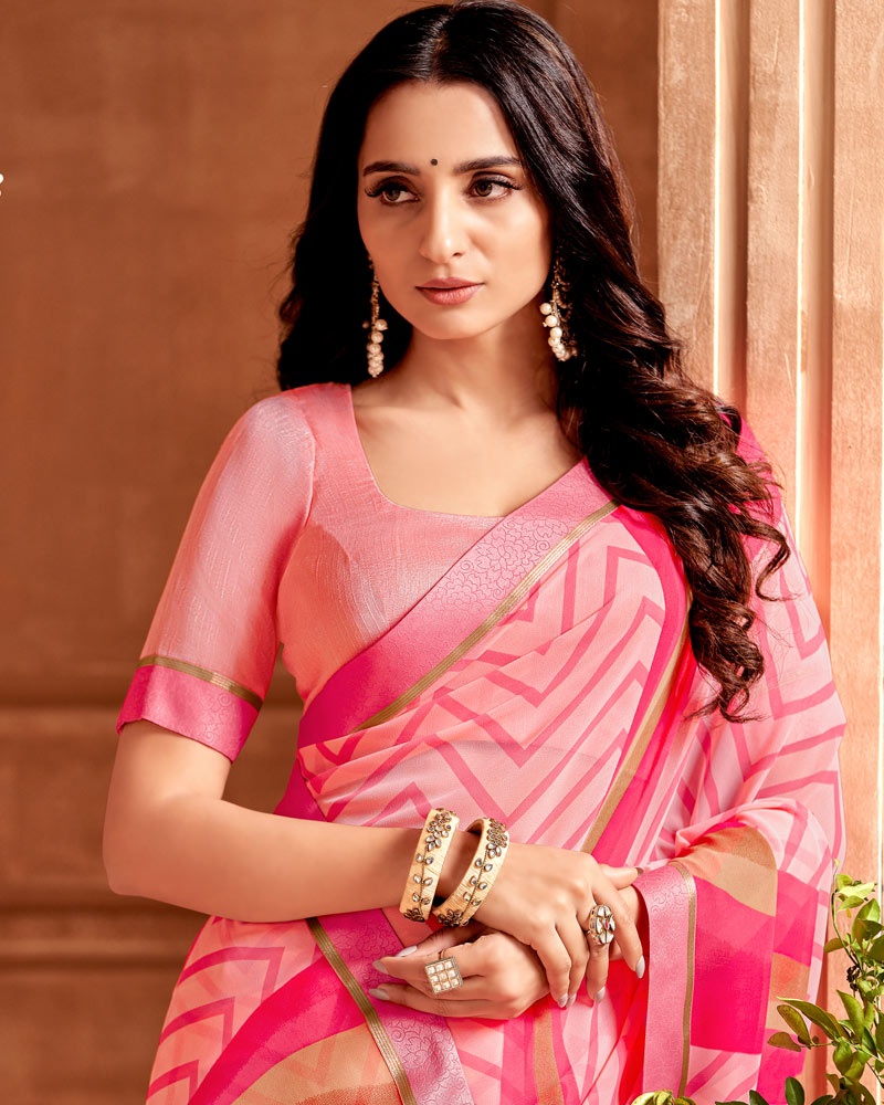 Vishal Prints Pastel Pink Printed Georgette Saree With Fancy Border