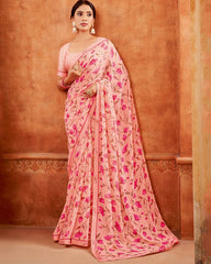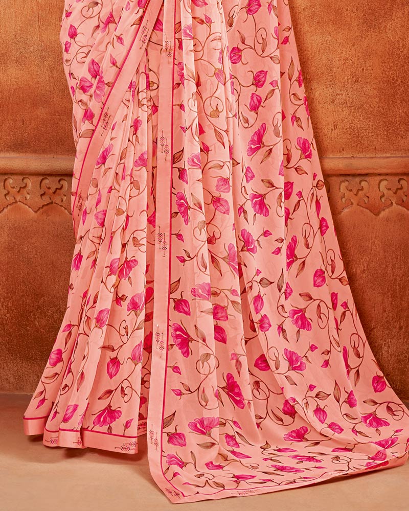 Vishal Prints Pastel Pink Printed Georgette Saree With Fancy Border