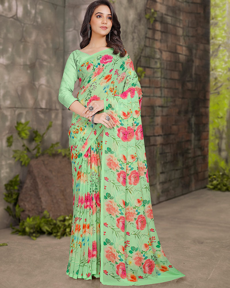 Vishal Prints Pastel Spring Green Digital Print Georgette Saree