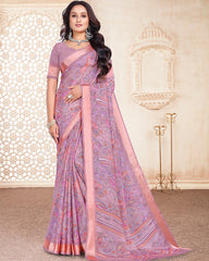 Vishal Prints Pastel Violet Digital Print Criva Crepe Saree With Weaved Viscose Patta
