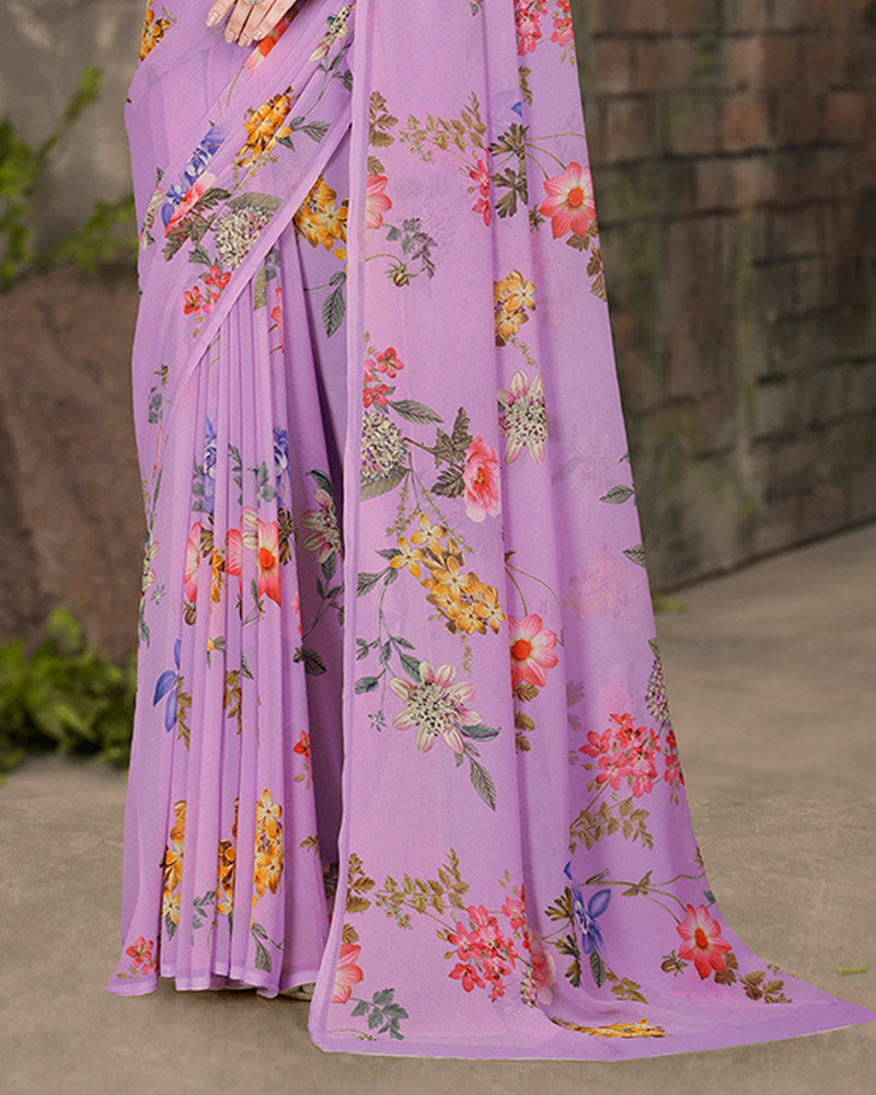 Vishal Prints Pastel Violet Digital Print Georgette Saree
