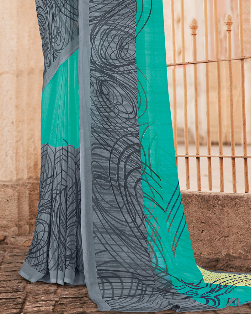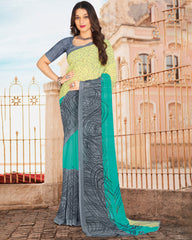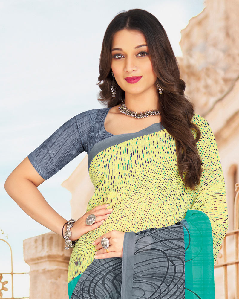 Vishal Prints Pastel Yellow Printed Georgette Saree