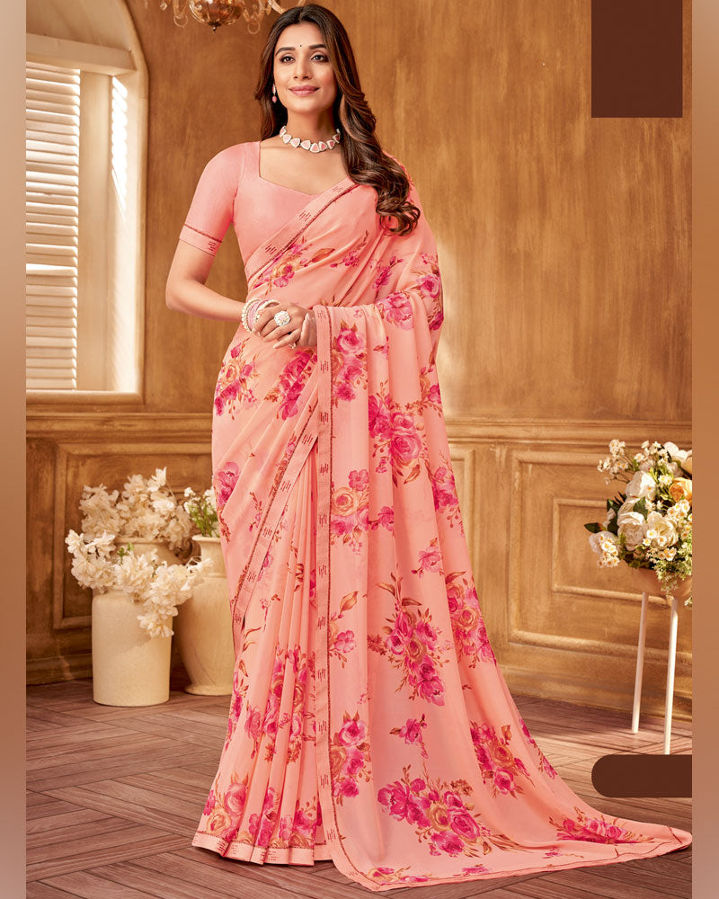 Vishal Prints Peach Printed Georgette Saree With Fancy Border