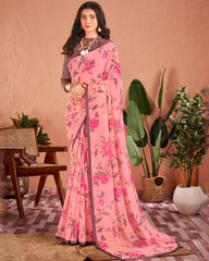 Vishal Prints Peach Printed Georgette Saree With Satin Piping