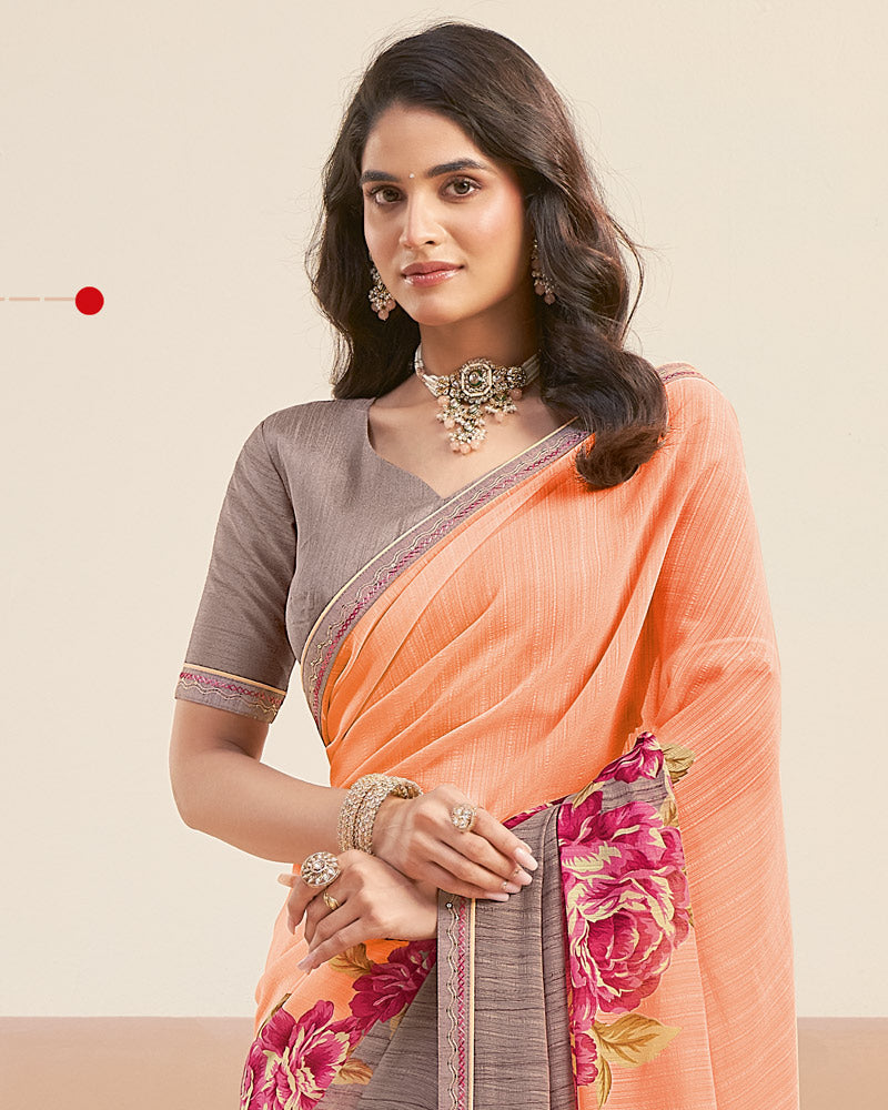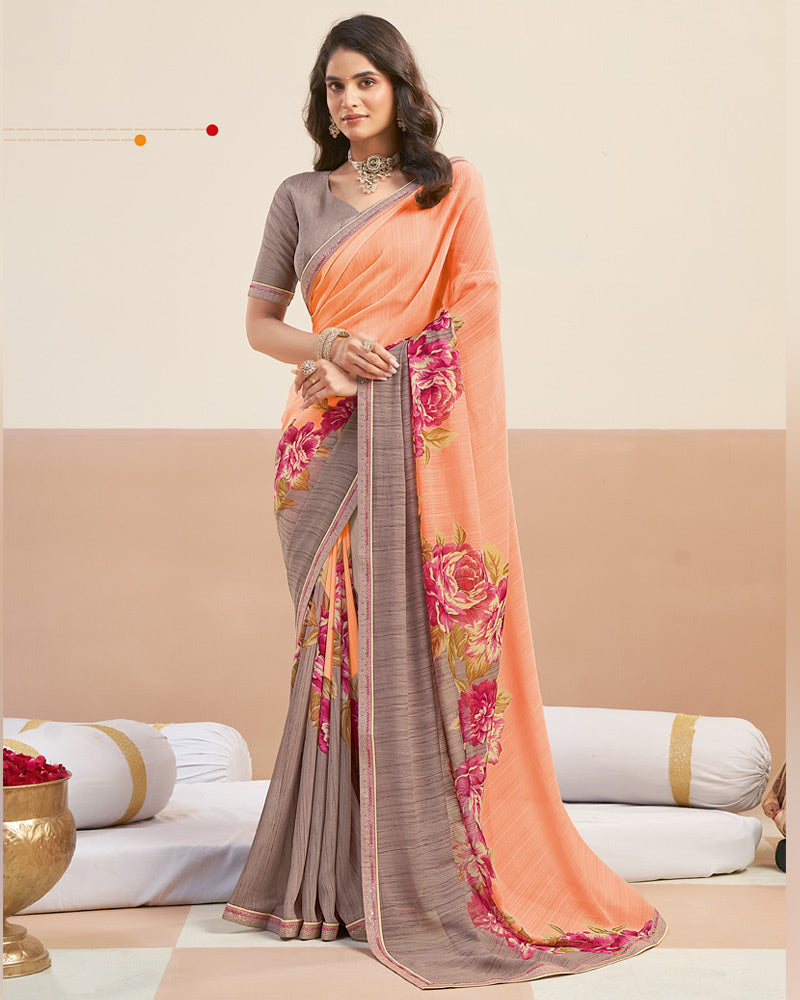 Vishal Prints Peachy Orange Printed Patterned Georgette Digital Print Saree With Fancy Border