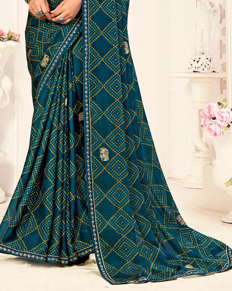 Vishal Prints Peacock Blue Printed Chiffon Saree With Foil Print And Fancy Border