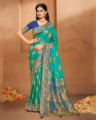 Vishal Prints Persian Green Designer Satin-Dola Saree With Diamond Work, Core Piping And Tassel