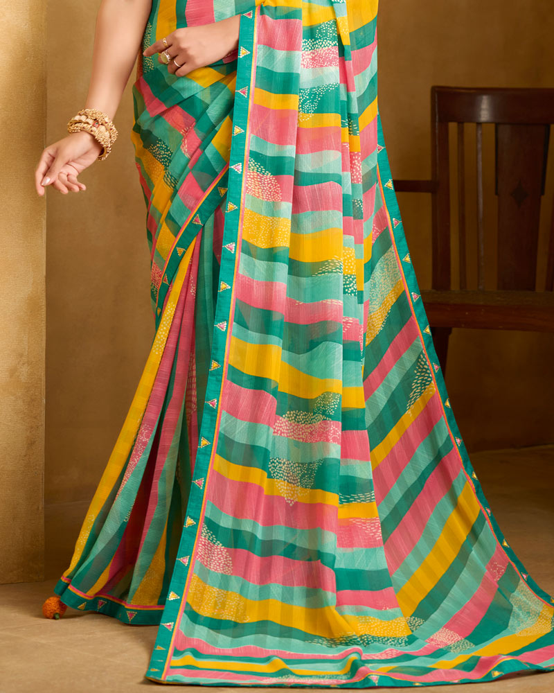 Vishal Prints Persian Green Printed Patterened Georgette Saree With Fancy Border