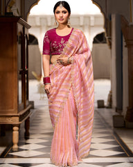 Vishal Prints Pink Orange Designer Crushed Tissue Saree With Diamond Work And Cut Work Embroidery Border