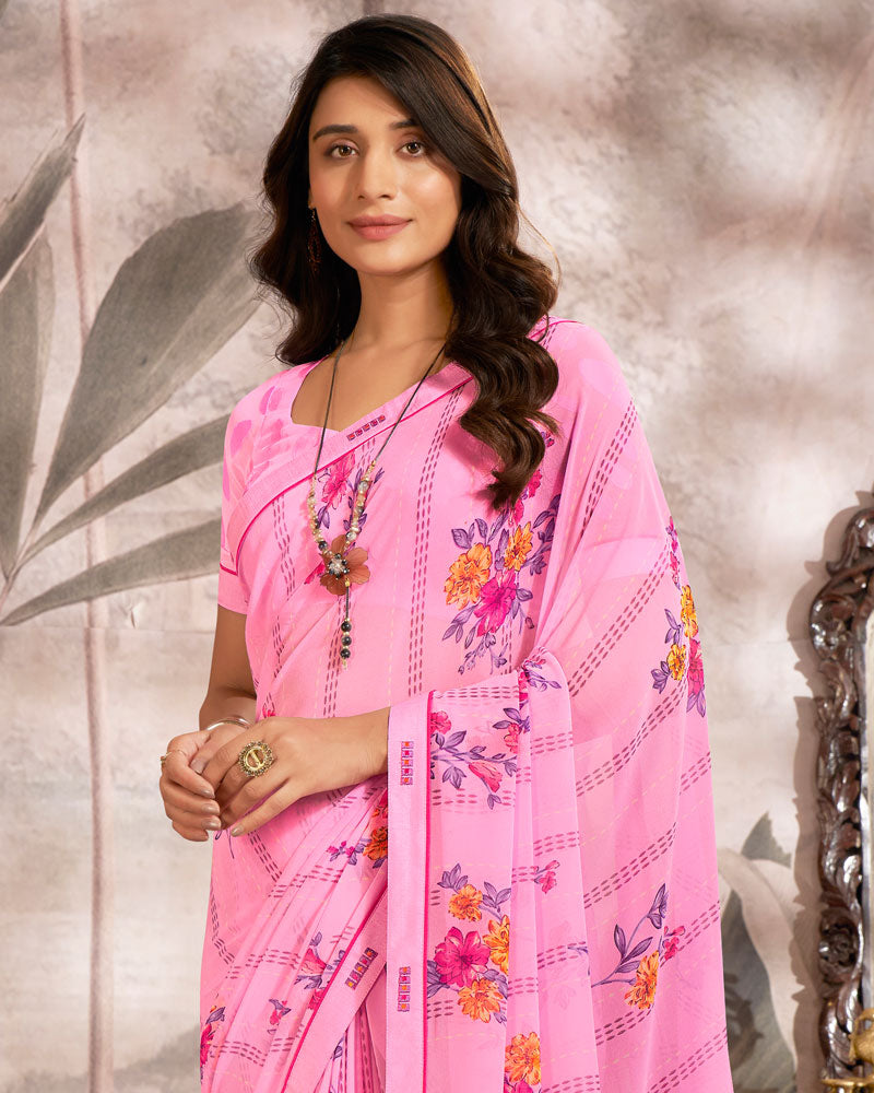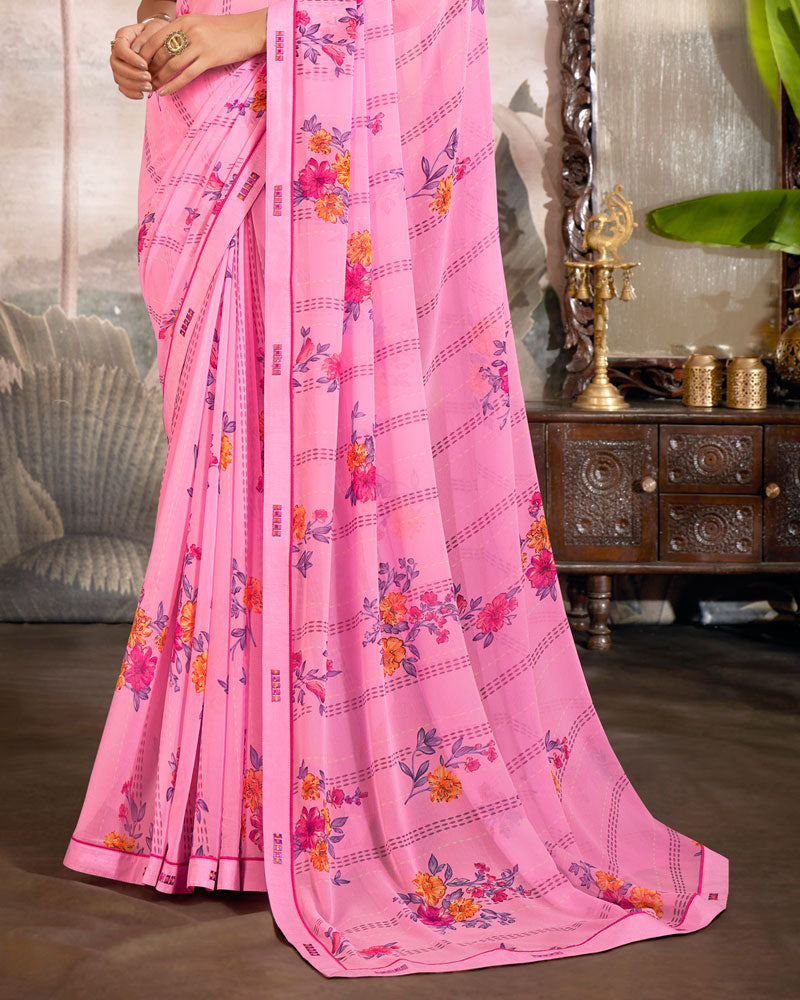 Vishal Prints Pink Printed Georgette Saree With Fancy Border