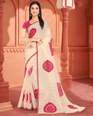 Vishal Prints Pinkish Red Fancy Chiffon Printed Saree With Foil Print And Cut Work Embroidery Border