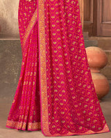 Vishal Prints Pinkish Red Georgette Saree With Foil Print And Zari Border