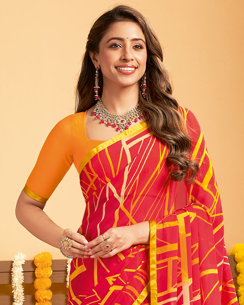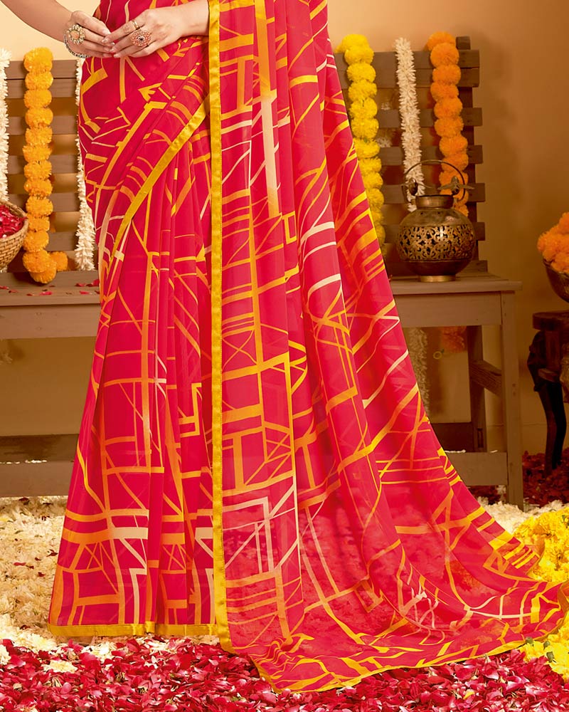 Vishal Prints Pinkish Red Printed Georgette Saree With Satin Piping