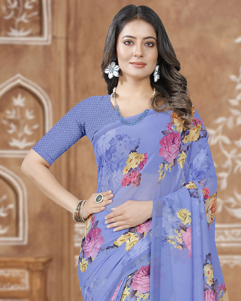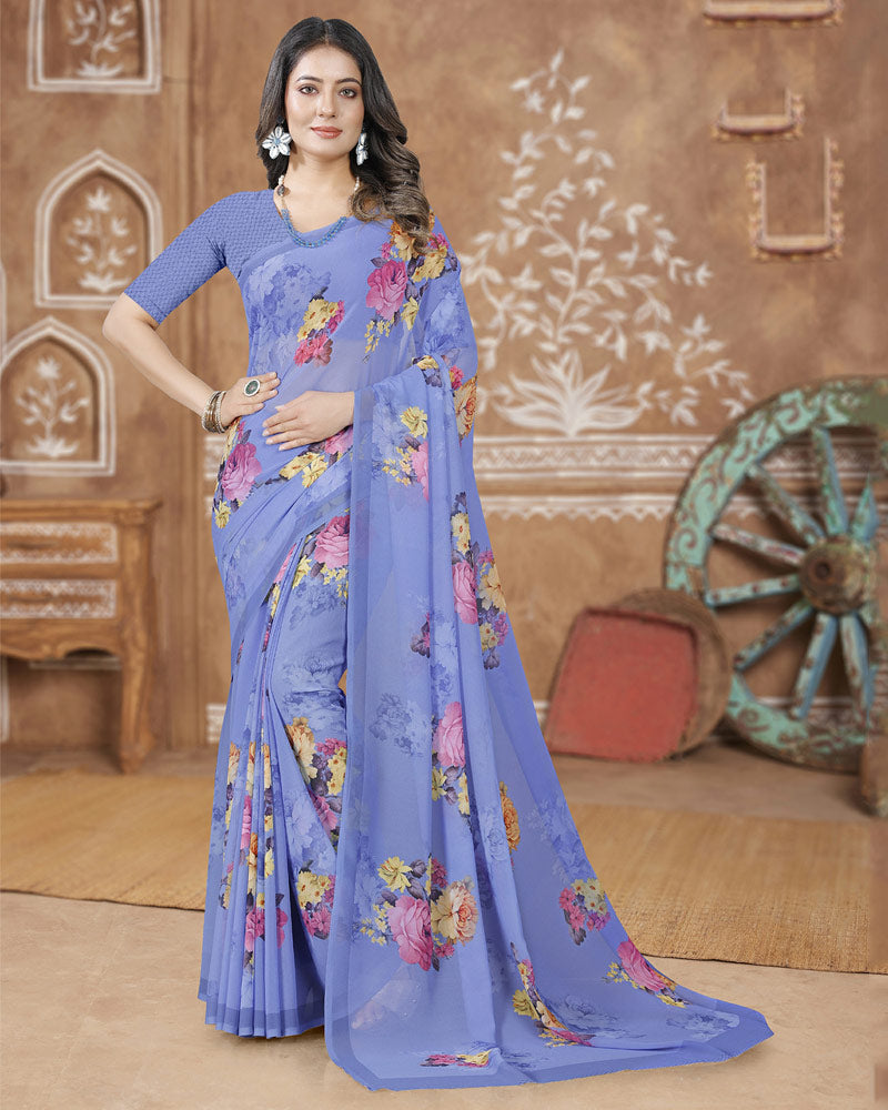 Vishal Prints Polo Blue Digital Print Georgette Saree