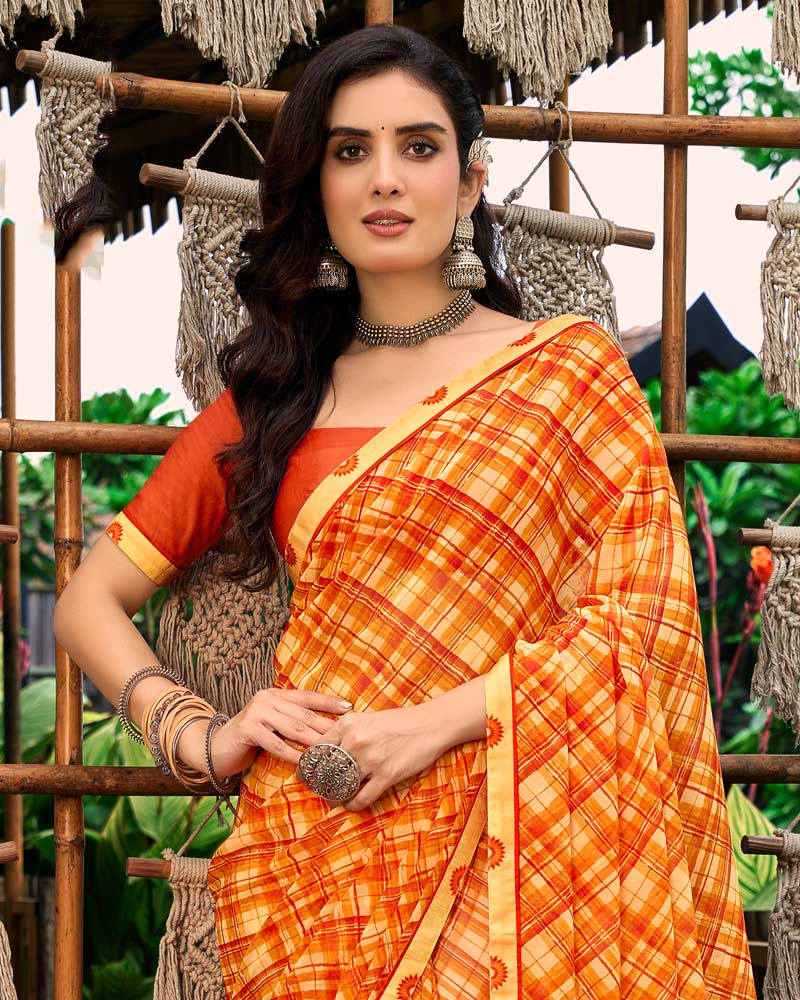 Vishal Prints Pumpkin Orange Printed Georgette Saree With Fancy Border