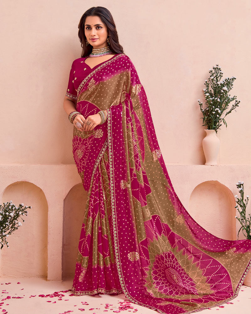 Saree Color Purple Red And Dull Brown