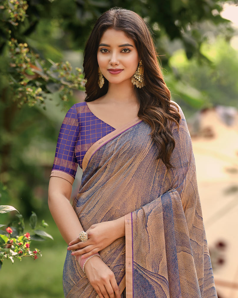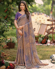 Vishal Prints Purplish Beige Printed Brasso Saree With Fancy Border