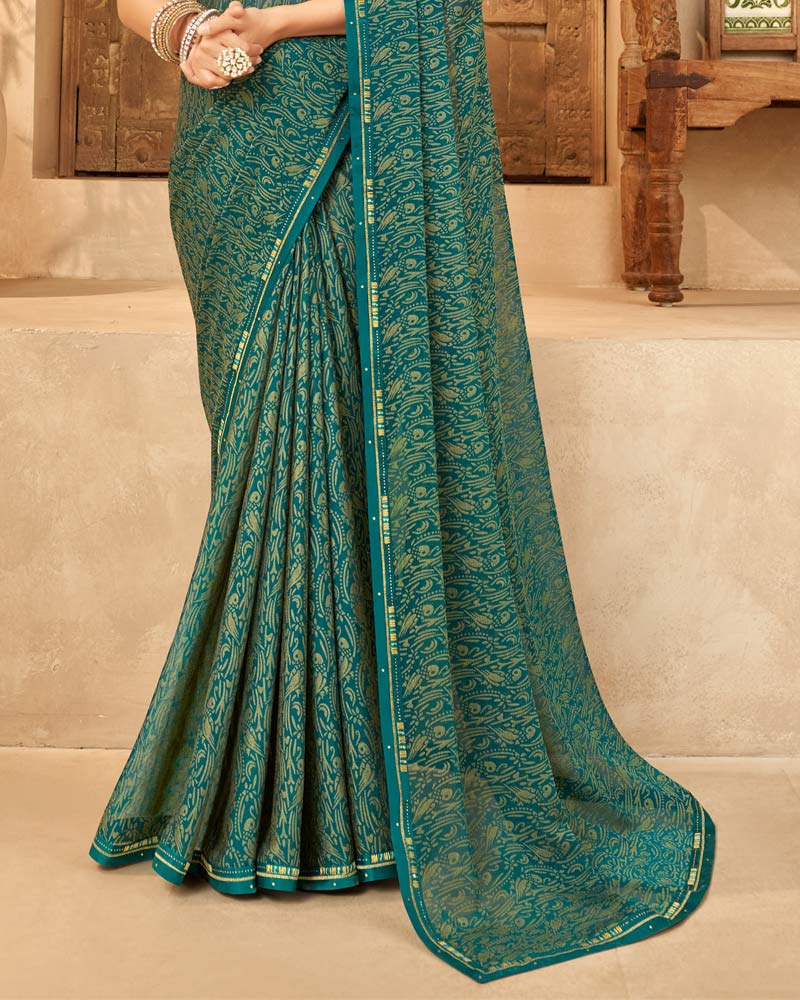 Vishal Prints Rama Green Designer Brasso Saree With Fancy Border