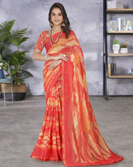 Vishal Prints Red Digital Print Georgette Saree With Fancy Border