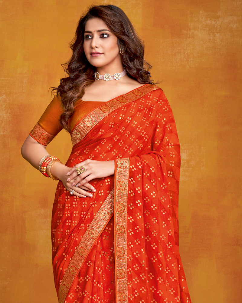 Vishal Prints Red Georgette Saree With Foil Print And Zari Border