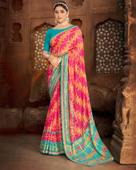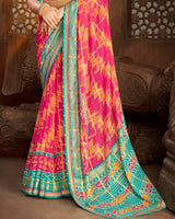Vishal Prints Red Pink Fancy Chiffon Patola Print Saree With Foil Print And Zari Border
