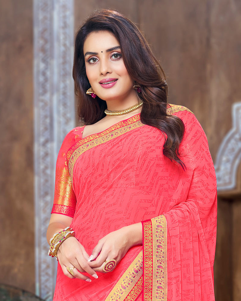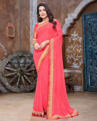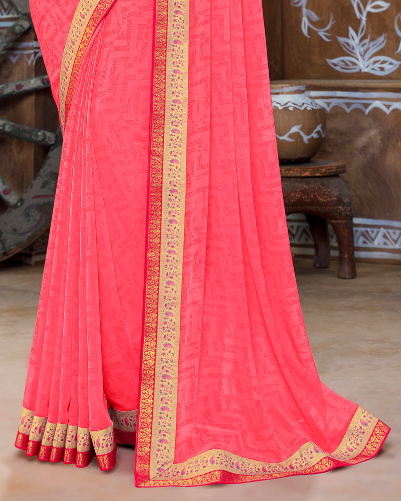 Vishal Prints Red Pink Georgette Saree With Fancy Border