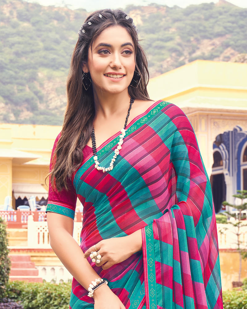 Vishal Prints Red Pink Printed Chiffon Saree With Border