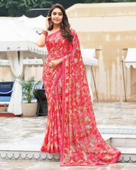 Vishal Prints Red Pink Printed Georgette Saree With Border