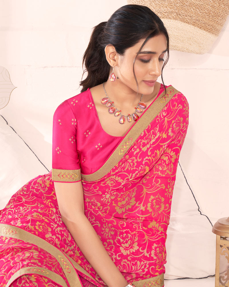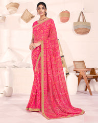 Vishal Prints Red Pink Printed Georgette Saree With Fancy Border