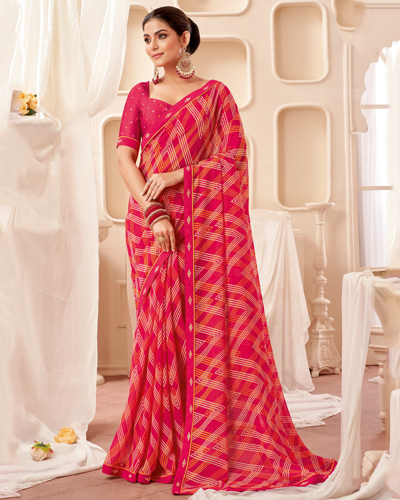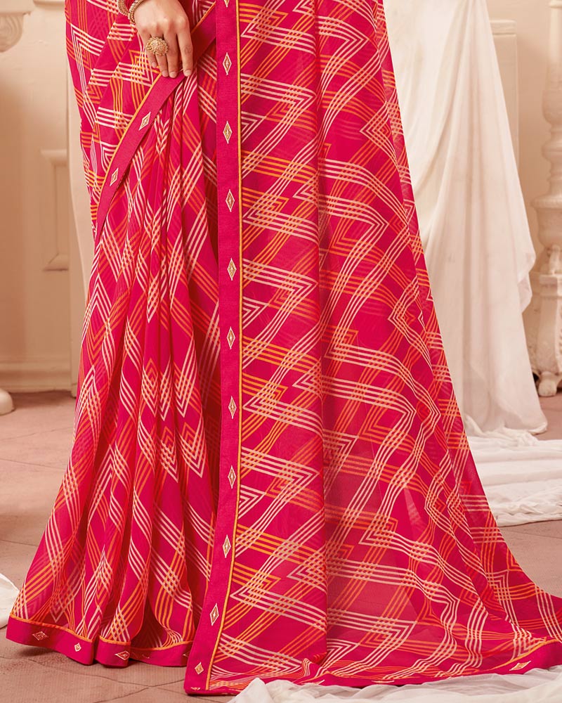 Vishal Prints Red Pink Printed Georgette Saree With Fancy Border