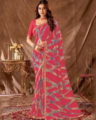 Vishal Prints Red Pink Printed Georgette Saree With Foil Print And Fancy Border