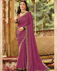 Vishal Prints Red Purple Designer Fancy Chiffon Embroidery-Diamond Work Saree With Cut Work Border