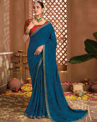 Vishal Prints Regal Blue Printed Georgette Saree With Fancy Border