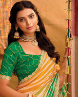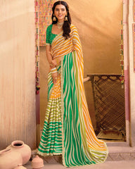 Vishal Prints Saffron Color Printed Fancy Chiffon Saree With Cut Work Embroidery Border