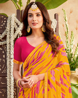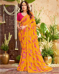 Vishal Prints Saffron Color Printed Georgette Saree With Fancy Border