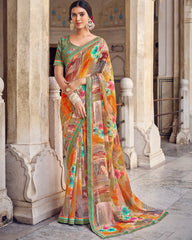 Vishal Prints Sage Green Digital Print Georgette Saree With Fancy Border
