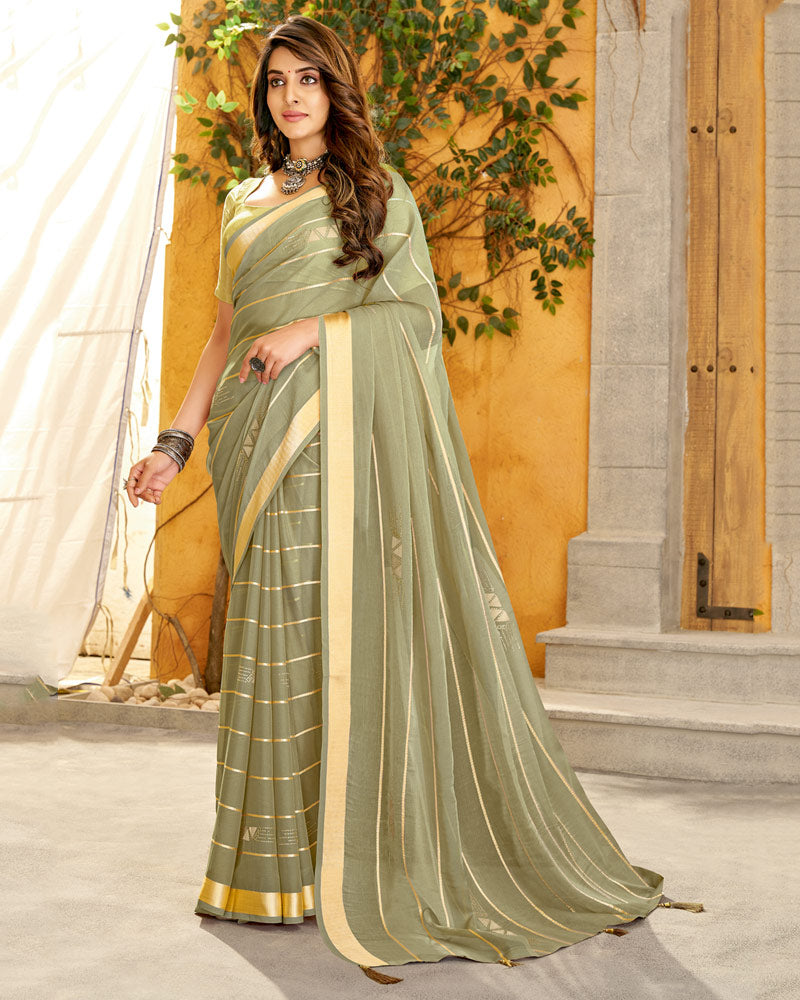 Vishal Prints Sage Green Fancy Chiffon Designer Saree