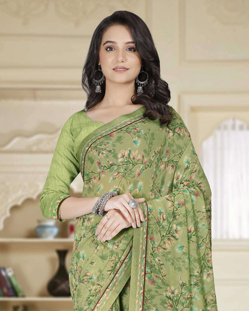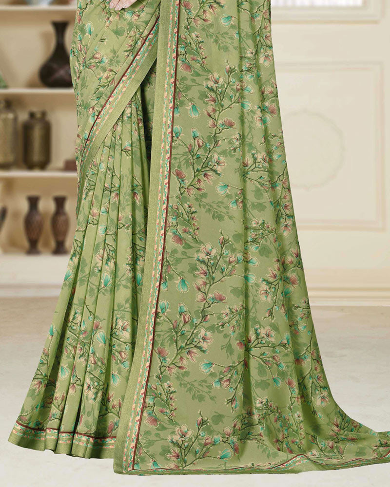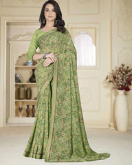 Vishal Prints Sage Green Printed Georgette Saree With Fancy Border