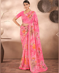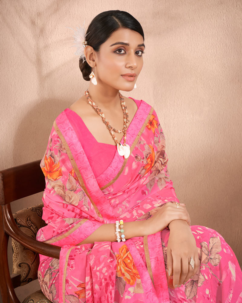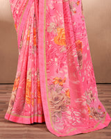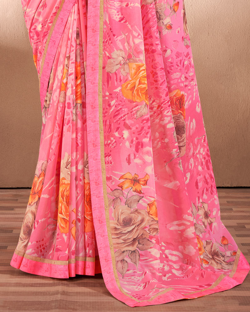 Vishal Prints Salmon Pink Printed Georgette Saree With Fancy Border