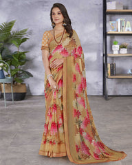 Vishal Prints Sand Brown Digital Print Georgette Saree With Fancy Border