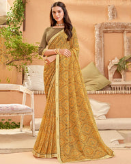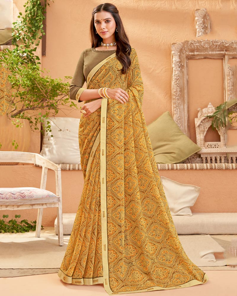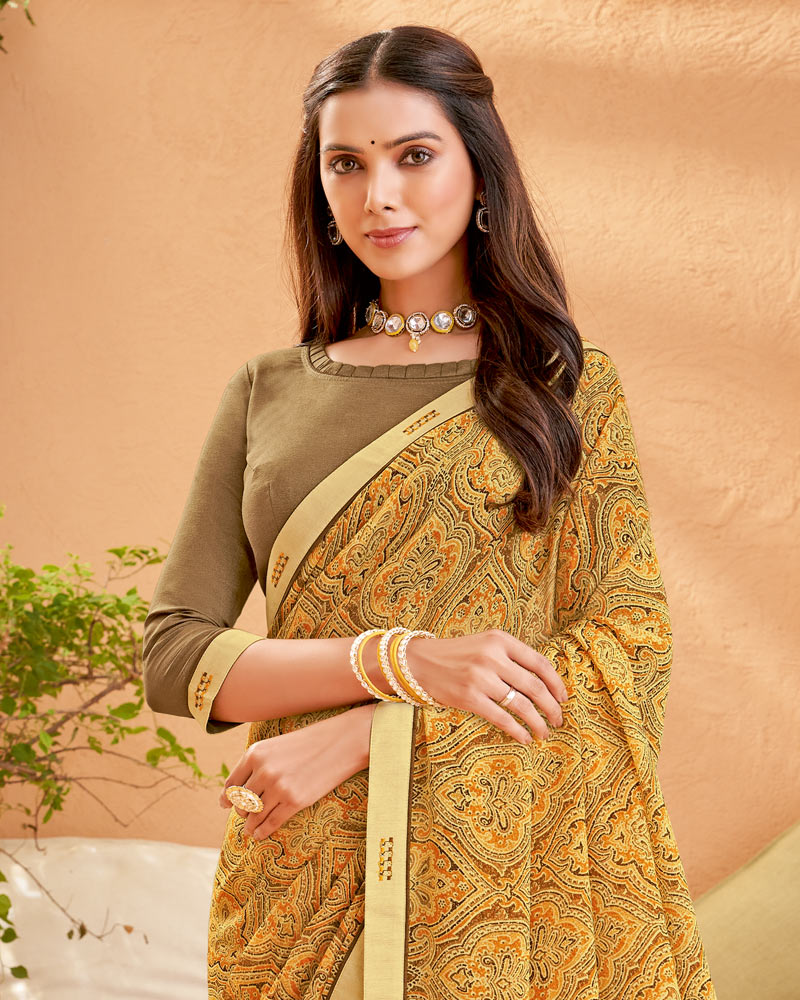 Vishal Prints Sand Brown Printed Georgette Saree With Fancy Border