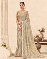 Vishal Prints Sand Grey Printed Designer Tissue Brasso Saree With Tassel