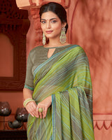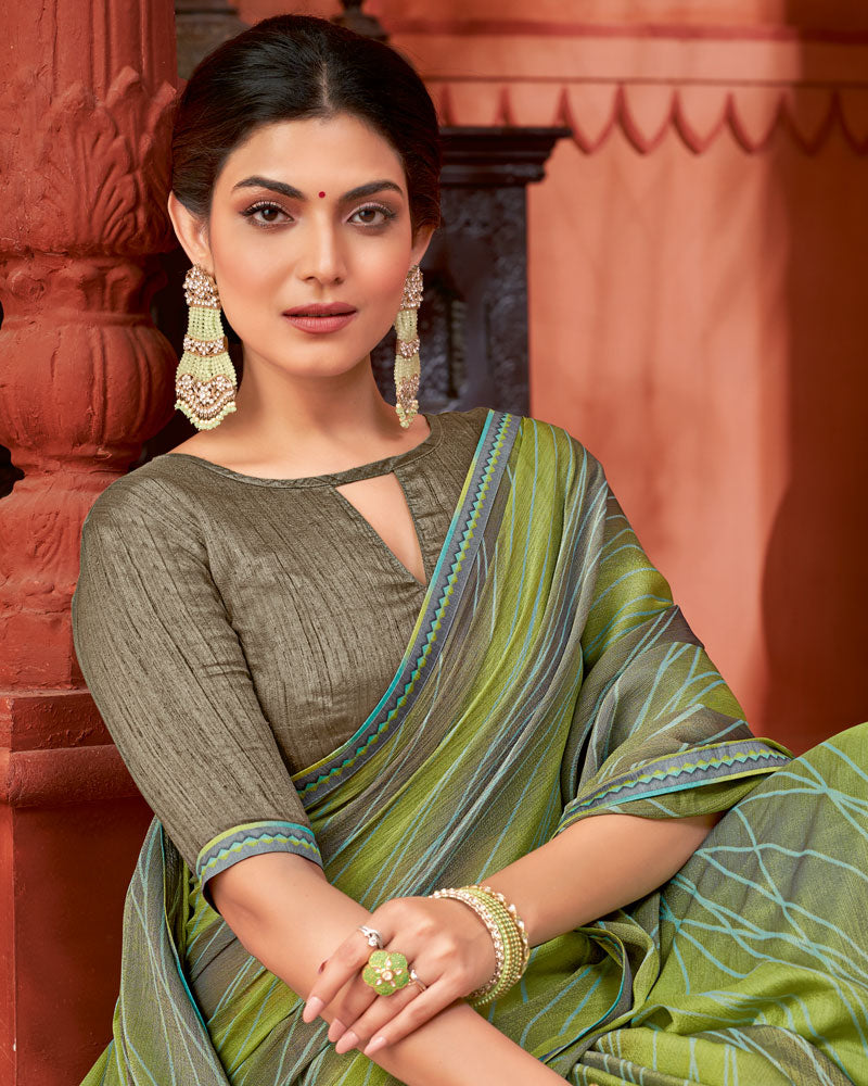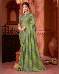Vishal Prints Sandal Green Printed Brasso Saree With Fancy Border