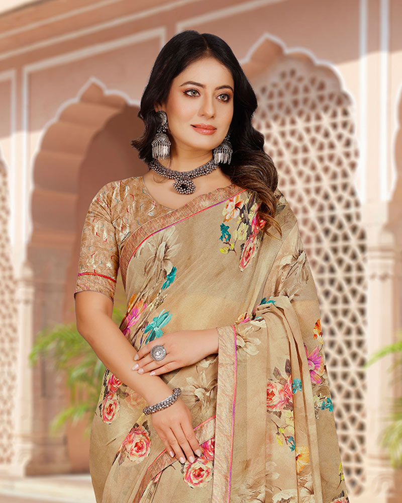 Vishal Prints Sandy Brown Digital Print Georgette Saree With Fancy Border