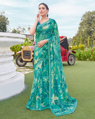Vishal Prints Sea Green Printed Chiffon Saree With Fancy Border