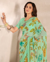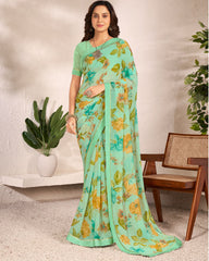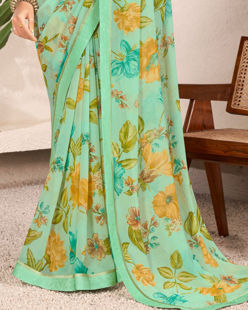 Vishal Prints Sea Green Printed Georgette Saree With Satin Border