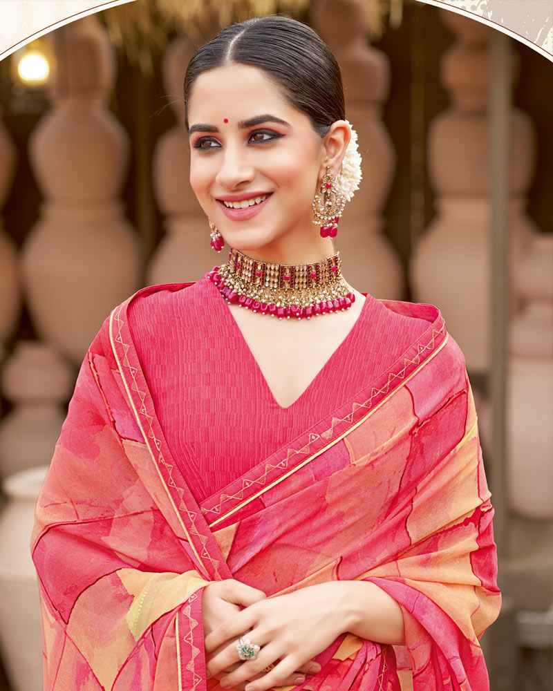 Vishal Prints Shaded Pink Printed Georgette Saree With Fancy Border